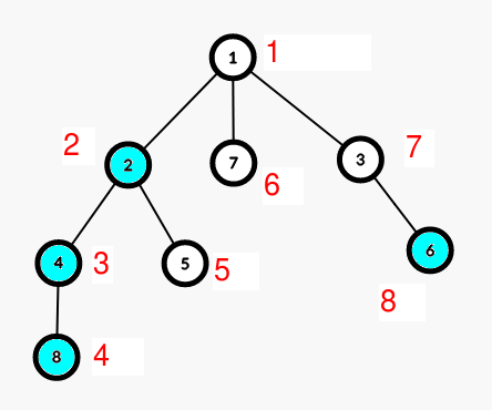 任意一个子树内的所有节点编号是连续的